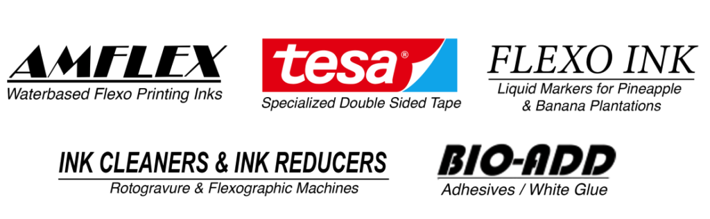 d Carries white Glue for box-forming, Stamping Inks, Water-Based Printing Inks, Anniline Dye (Liquid Markers), Solvents, Special Double Sided Tape, and other packaging products.